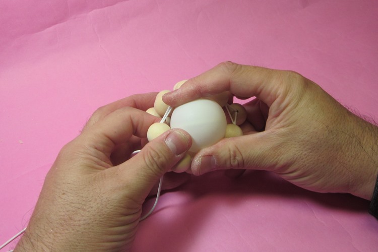 Twenty wooden balls have been used so far. If a half-sphere has been formed, then you have worked out the procedure correctly. Ten more beads to go! | |