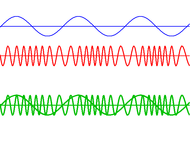 横波は青色で、縦波は赤色で、そして両方を重ねて緑で表現しています。