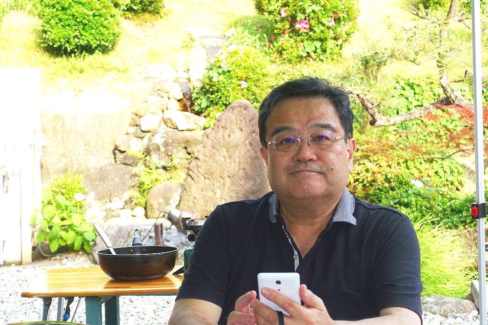 新しく買った、柱のあるターフを張って、記念の一枚。