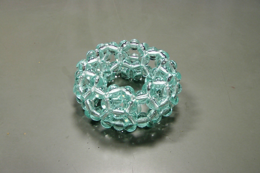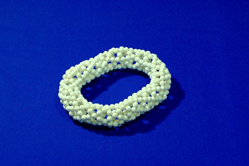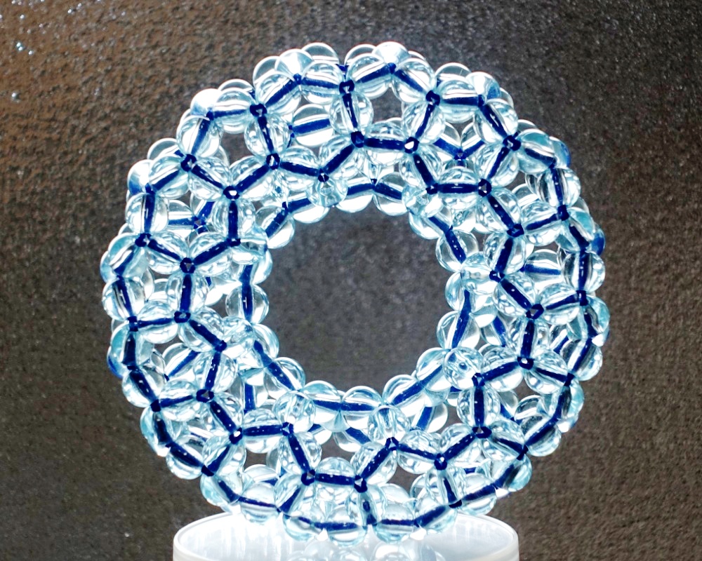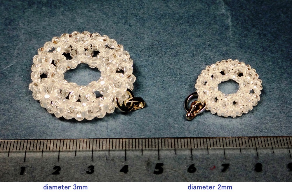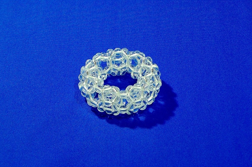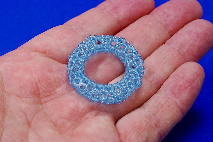 3回揺れて1周するトーラスの透明ビーズ編み。 | |
