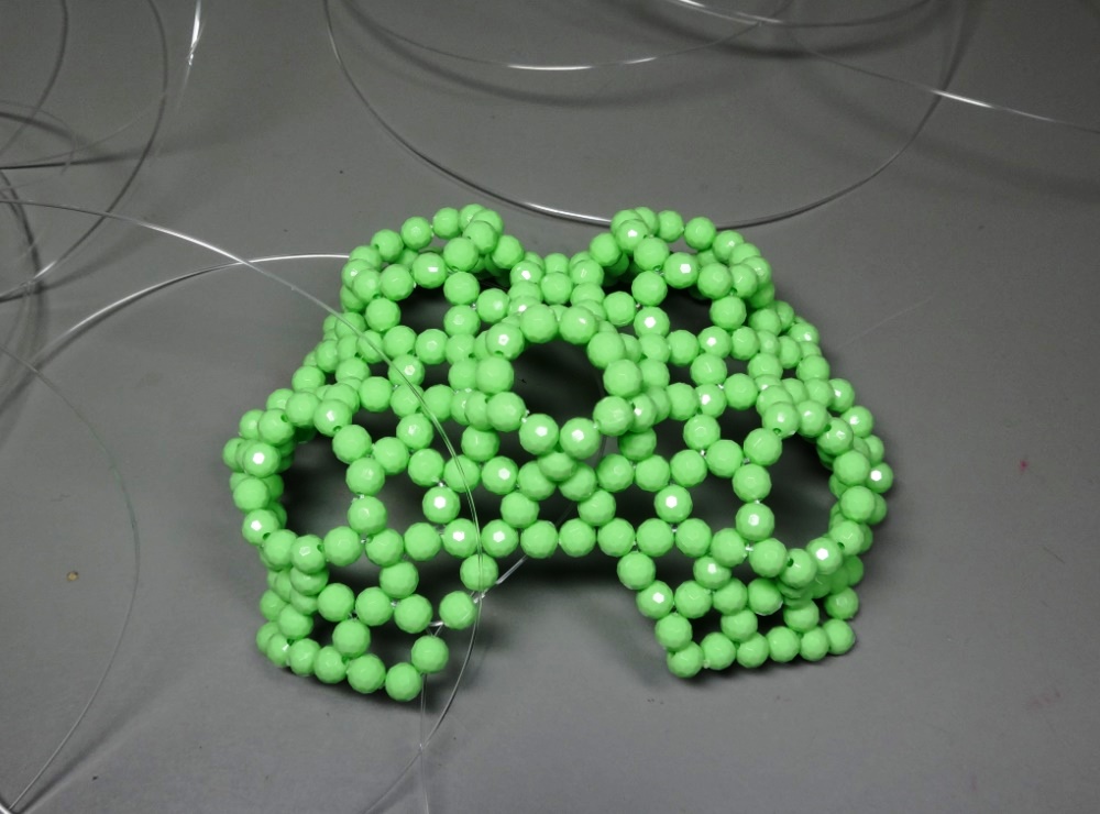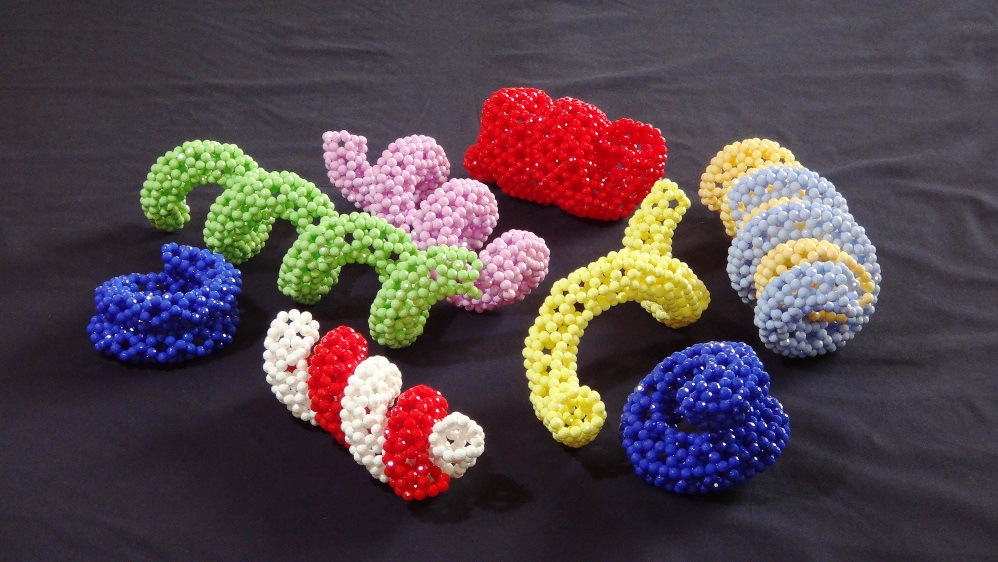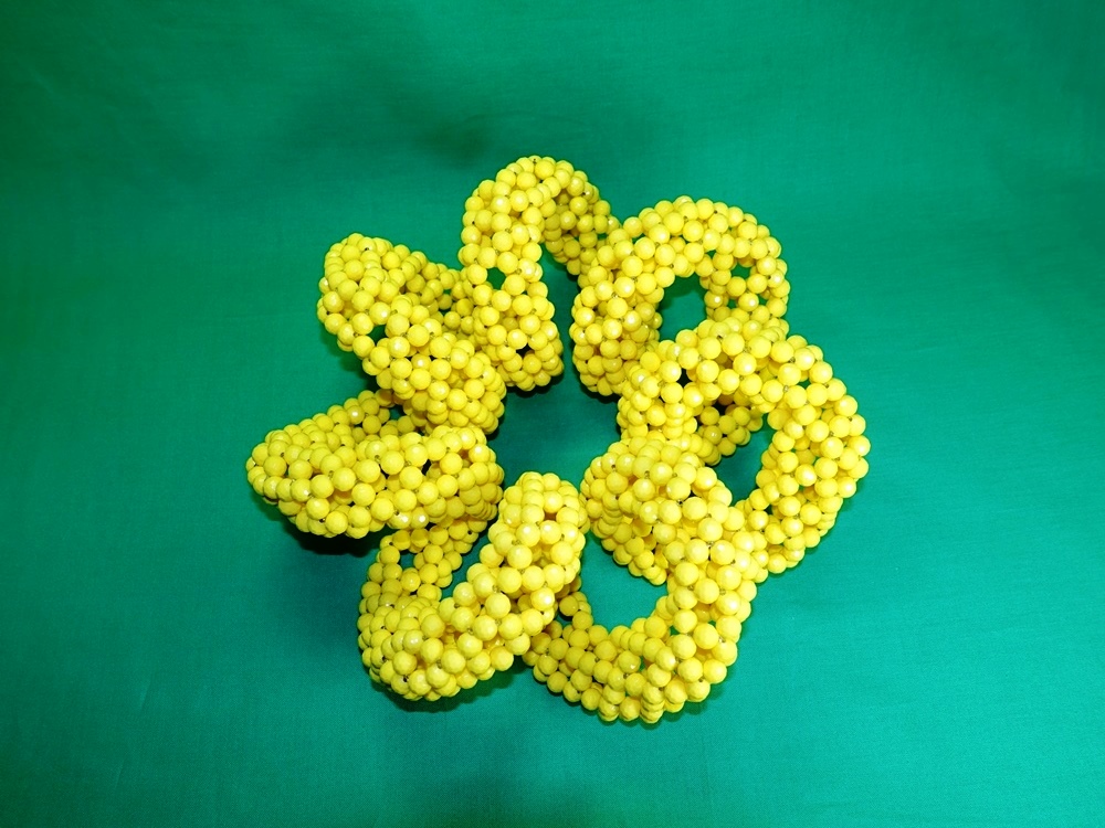 最初の30球のビーズ編みから、 336個のトーラス(リング)状のビーズ編みまで | |