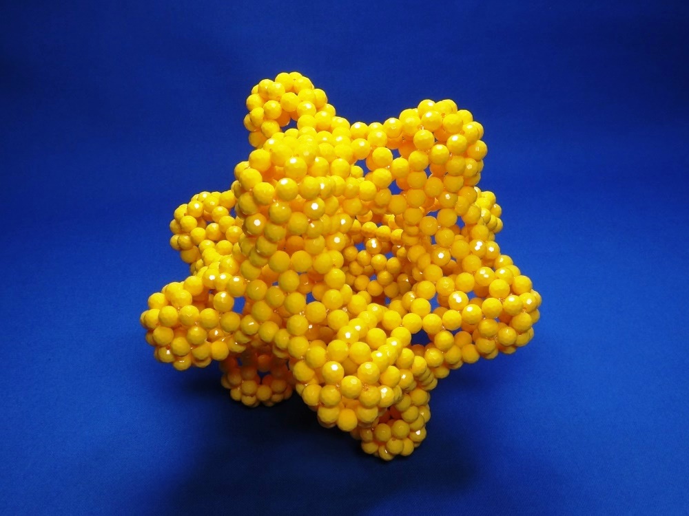 ICOSIDODECAHEDRON の3色ビーズ編み。 製作経過写真有り。 | |