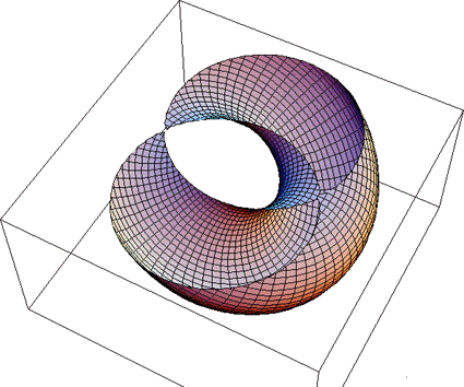 トーラスを立てたまま、カットしていくと、途中でレムニスケートが表れます。