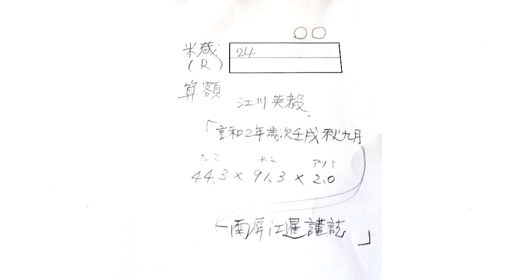 (8) 算額のデータ 右側の米倉(北米倉)(1802年、縦44.3cm、横91.3cm、厚2.0cm) |
