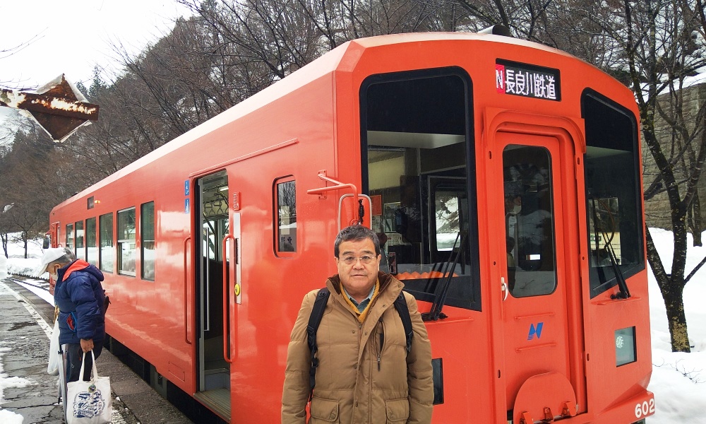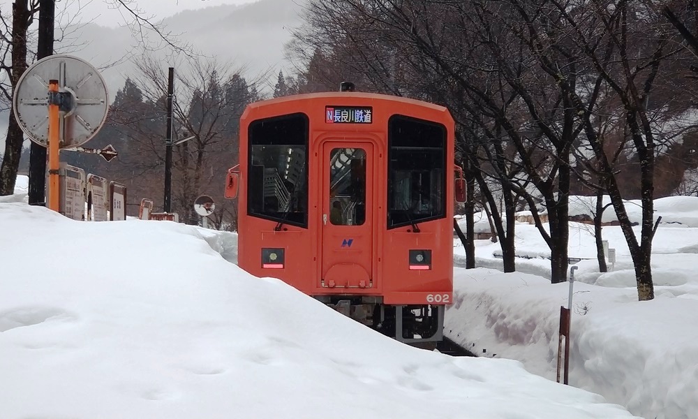 (4)郡上八幡駅で、上下線すれ違い。 |