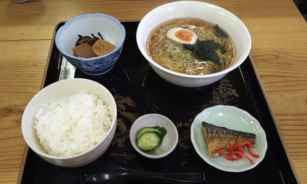 (8)北濃駅舎内、食堂でラーメン定食(私) |
