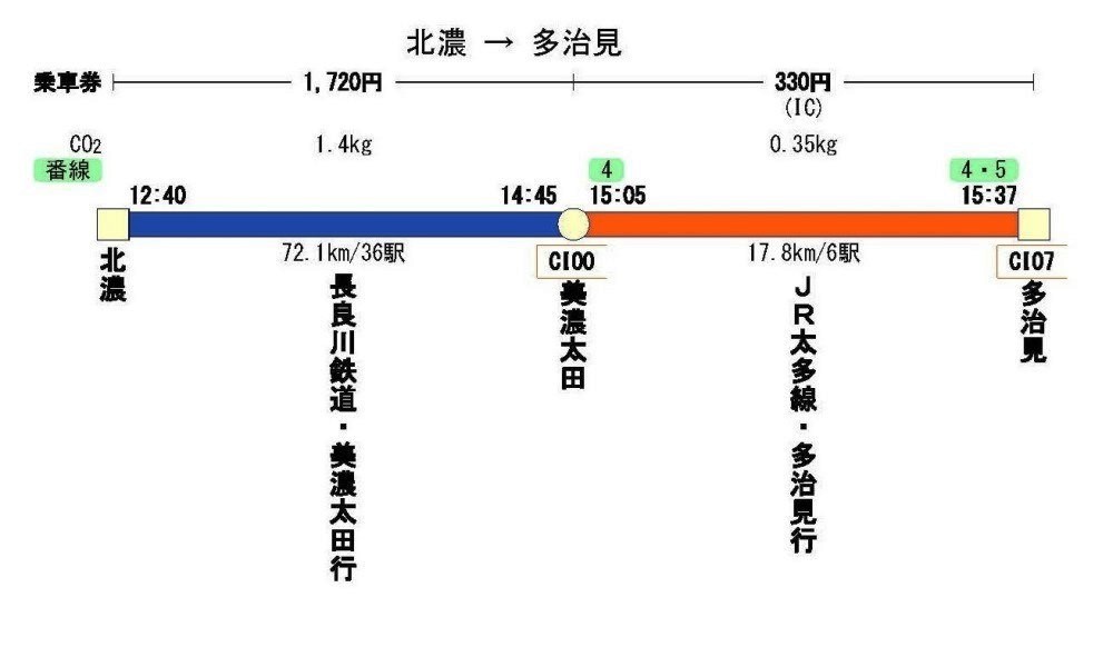 (500円分の金券付)、多治見・北濃間の乗車列車 |