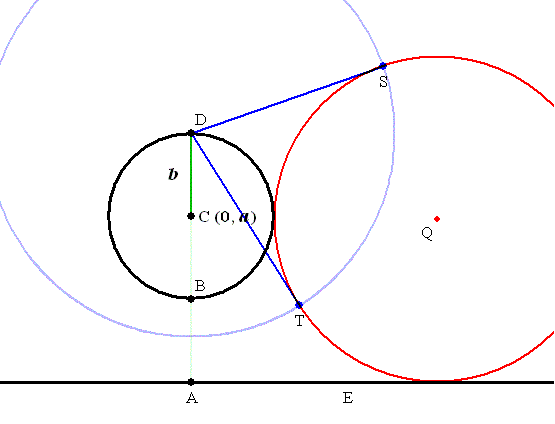 それらに接する円Qへ、図の点Dから接線DS,DTを引く。