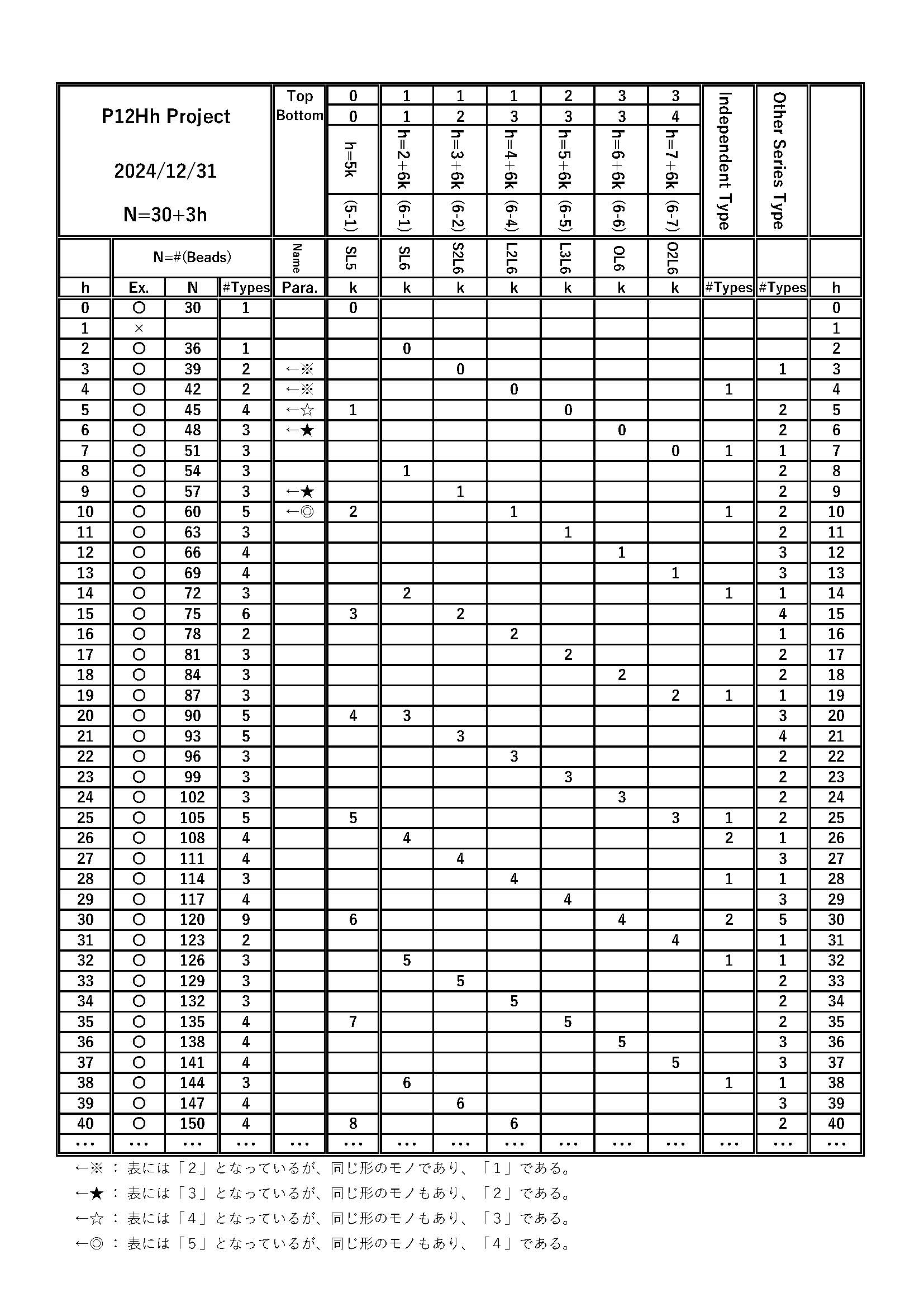 --- Notation --- N : Number of Beads P12Hh : 12-Pentagon and h-Hexagon" h : Number of Hexagon, k : Parameter in non-Negative Integer |