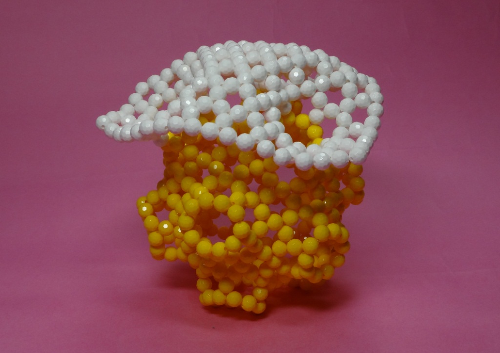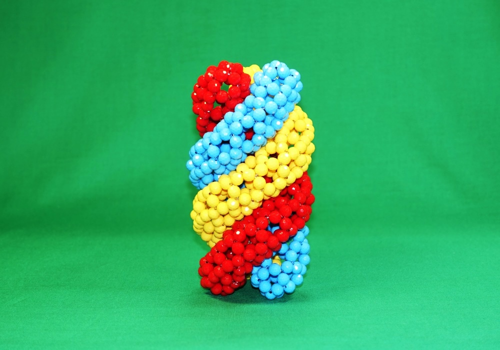 最初の30球のビーズ編みから、 336個のトーラス(リング)状のビーズ編みまで | |