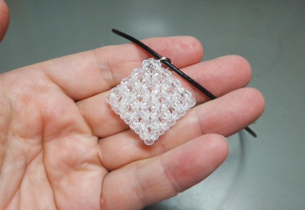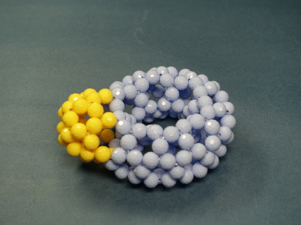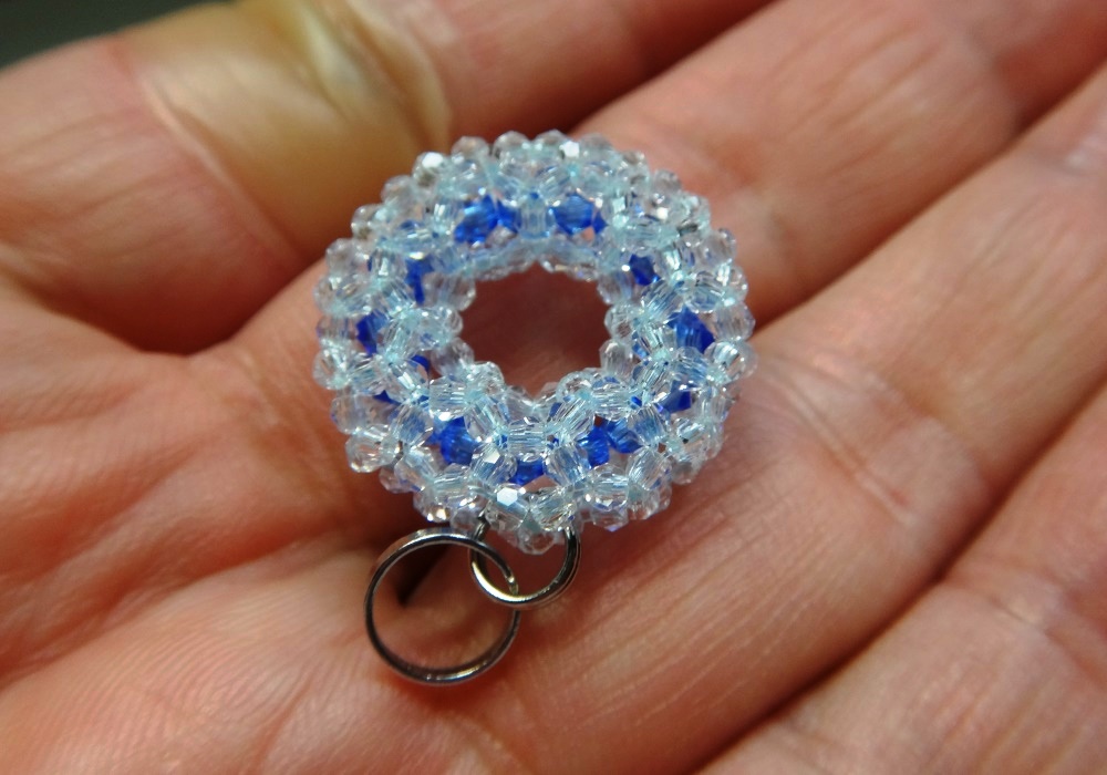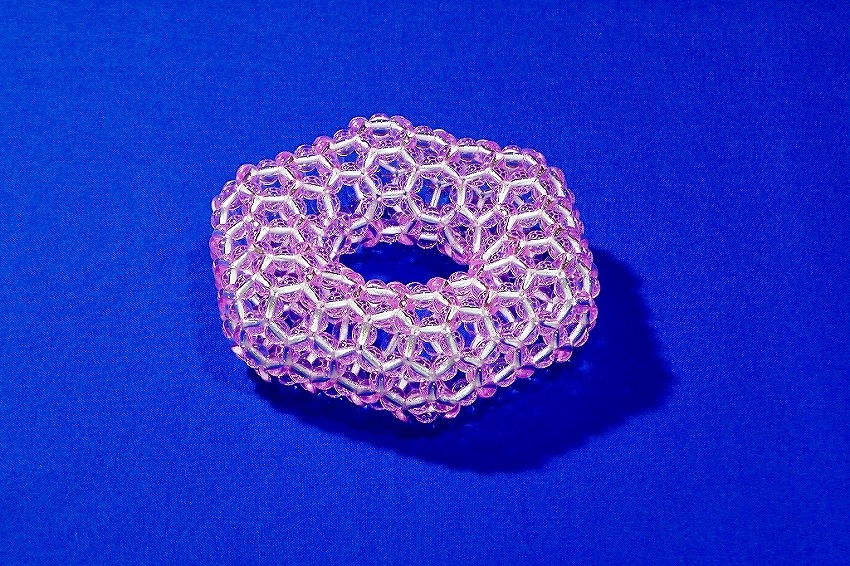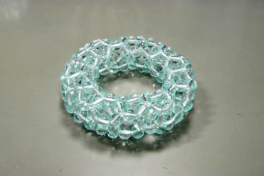 3回揺れて1周するトーラスの透明ビーズ編み。 | |