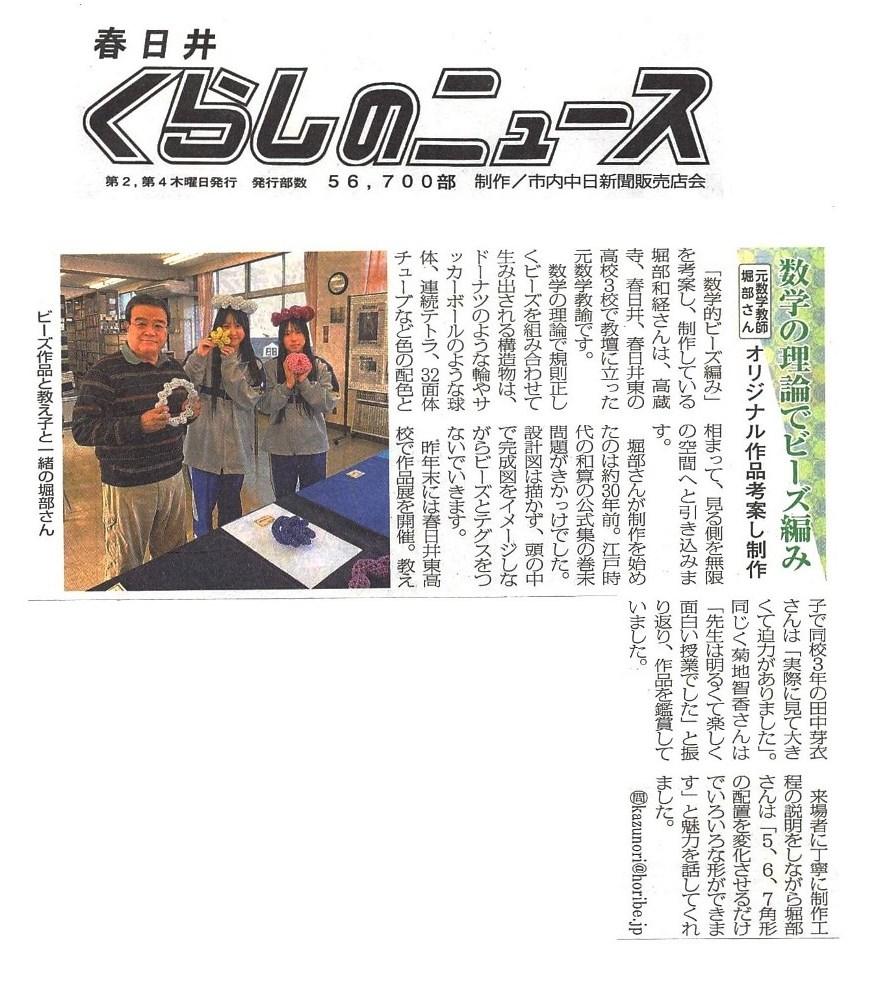 昨日の中日新聞の取材記事が近郊版に掲載されました。 ![]() [ CLICK ] 電子版のデータを利用しています。 【PDF】 ・・・12月16日(月)・・・(展示6日目)今週は13:00〜16:45となりました・・・