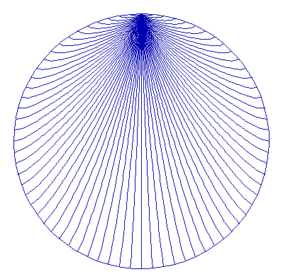 z=0を原点中心半径1の球へ点(0,0,-c)からの射影(No.13) |