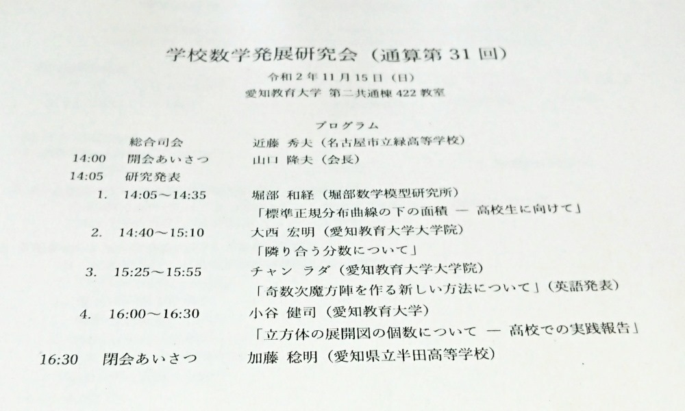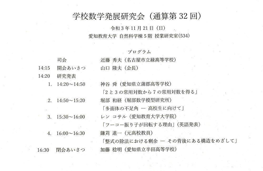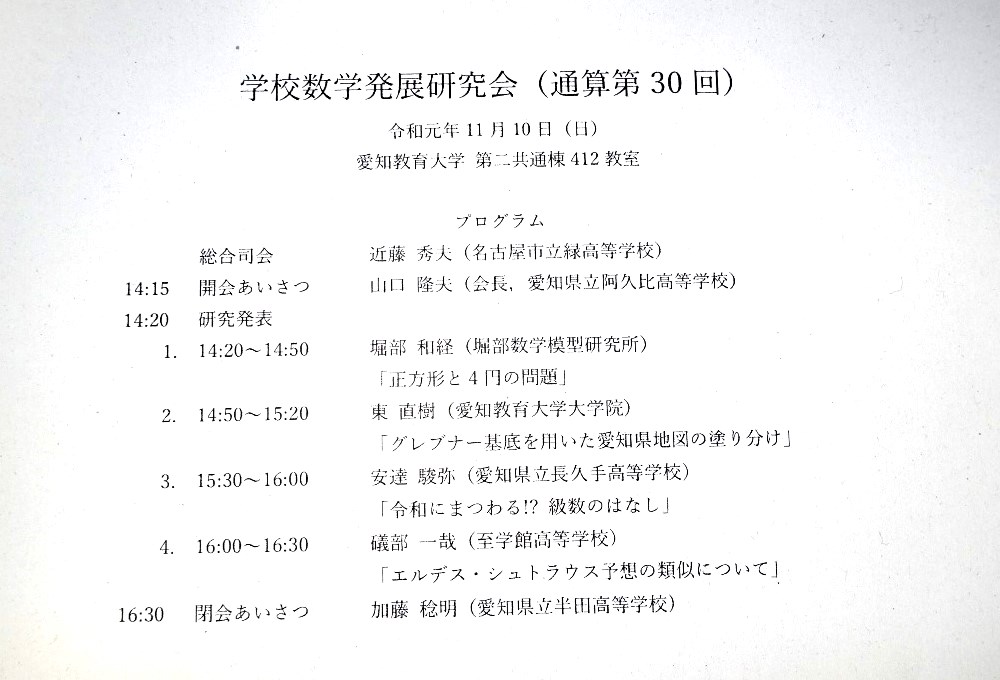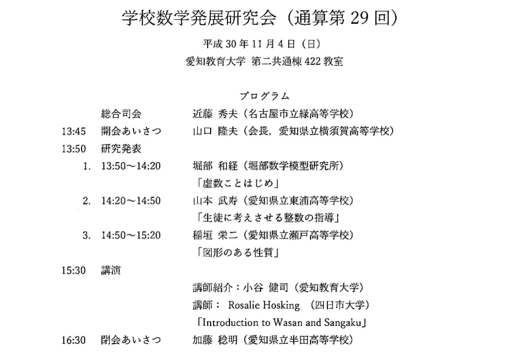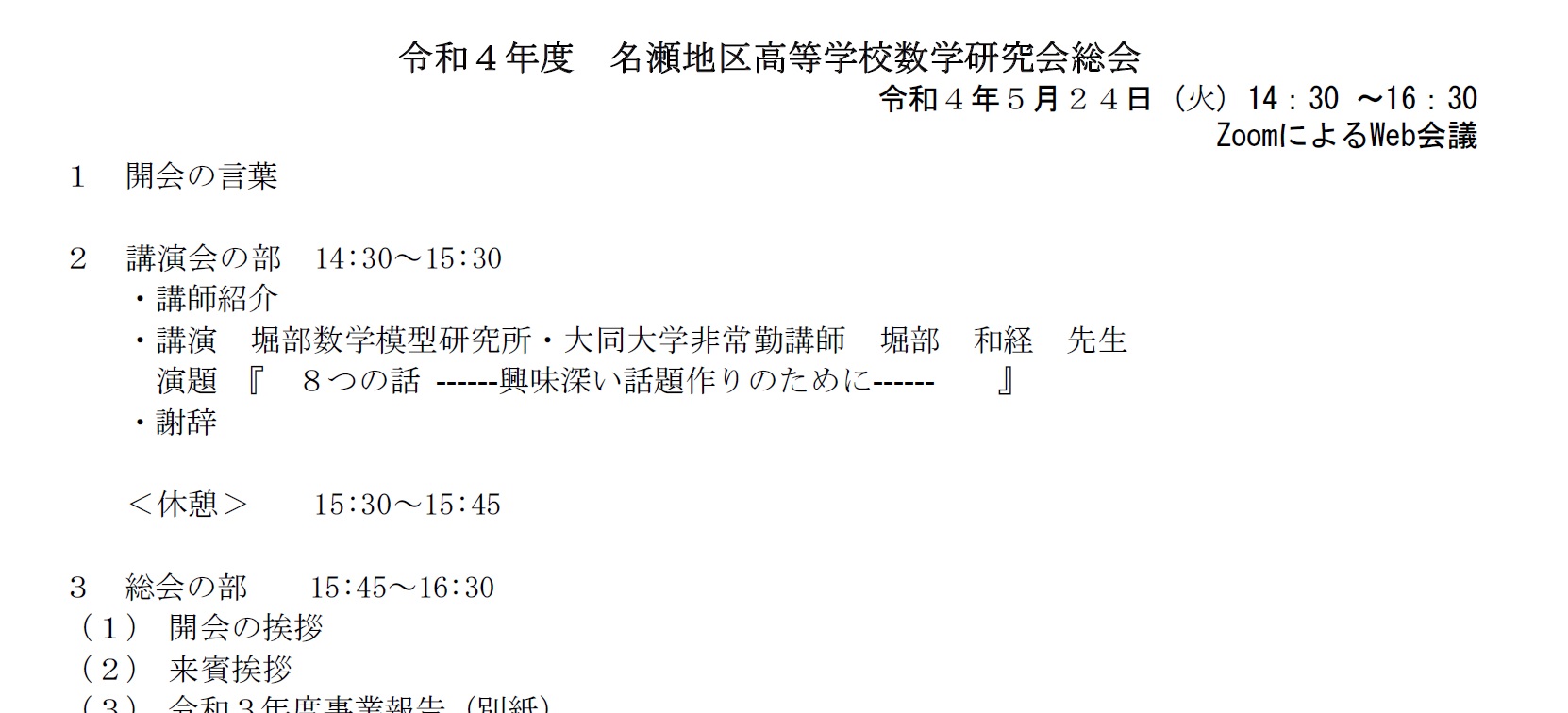 ・講演 堀部数学模型研究所・大同大学非常勤講師
