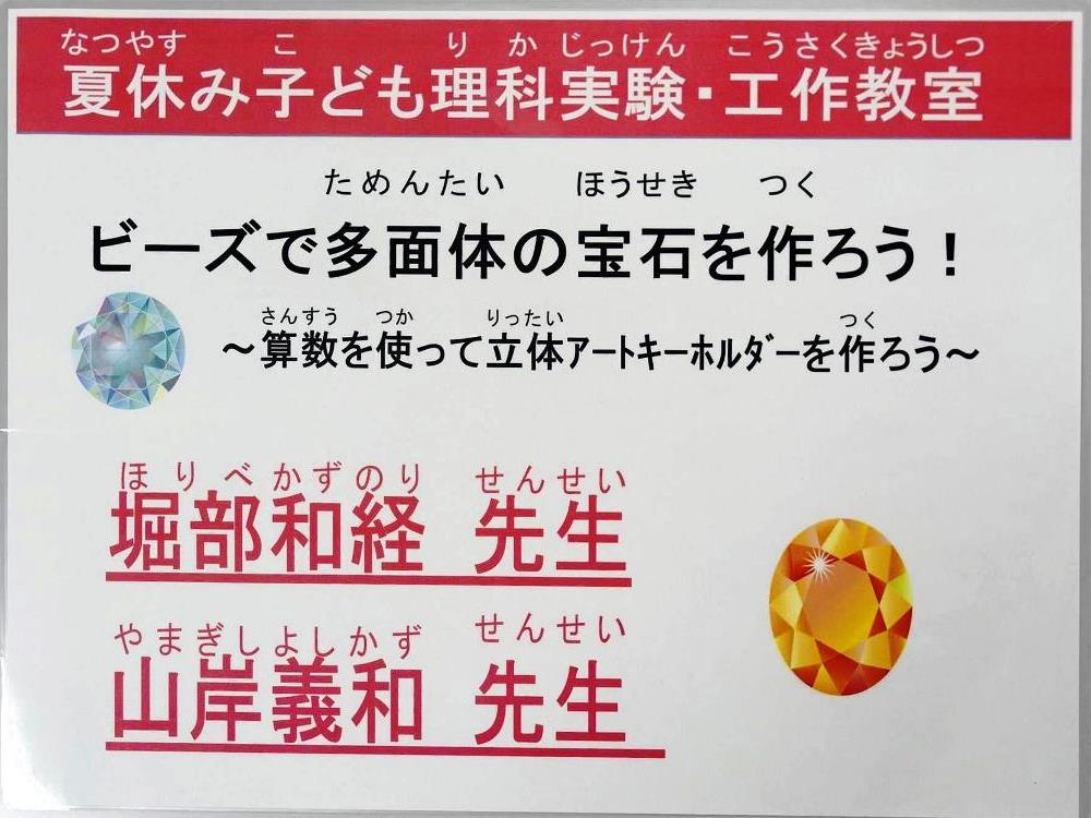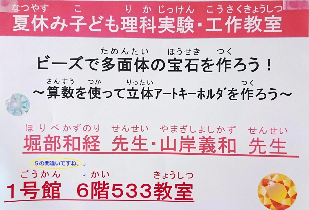 『ビーズで多面体の宝石を作ろう!』を担当しました。(今年も・・・)