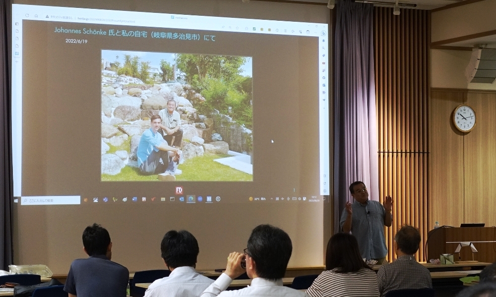 (2)今回のワークショップのネタ元のヨハネス・シュンケ氏と私の関係を話しているところ。