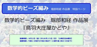 (1)報告・「数学的ビーズ編み 堀部和経 作品展」の報告