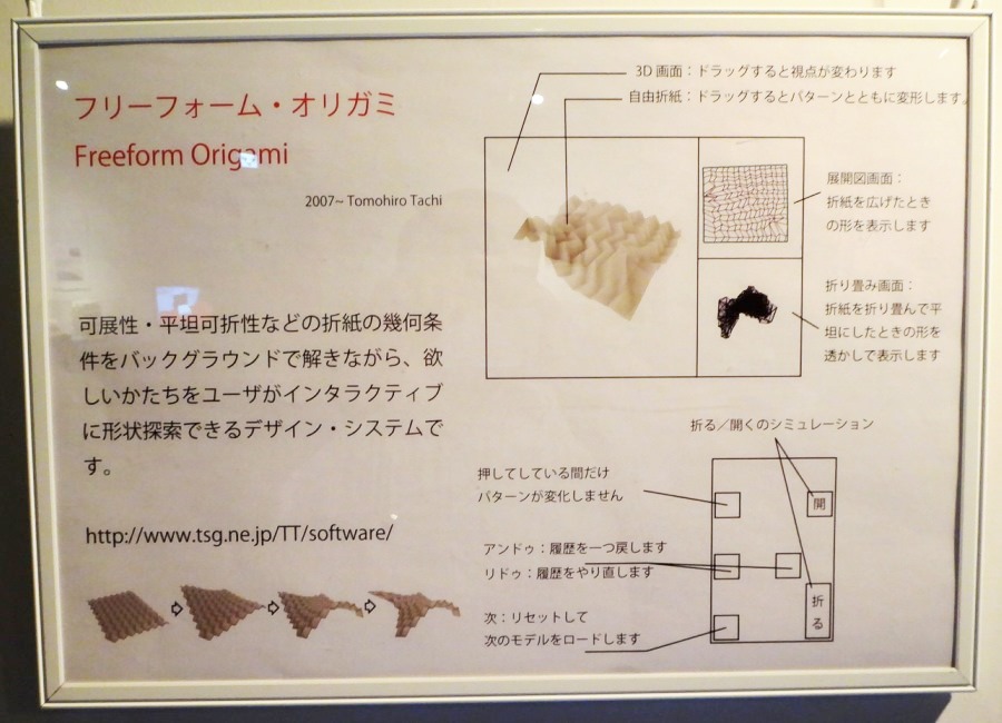 ![]() 自由形状剛体折紙 (パンフの裏) 動画を YOU TUBE にアップ ・・・ 撮影はたまたま、そこにいた親切な方 m(_ _)m |