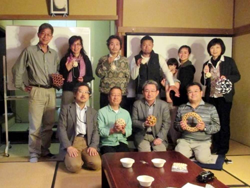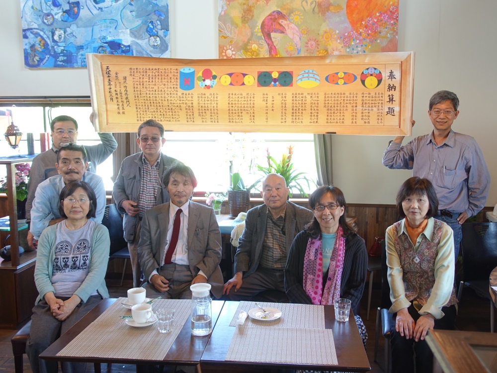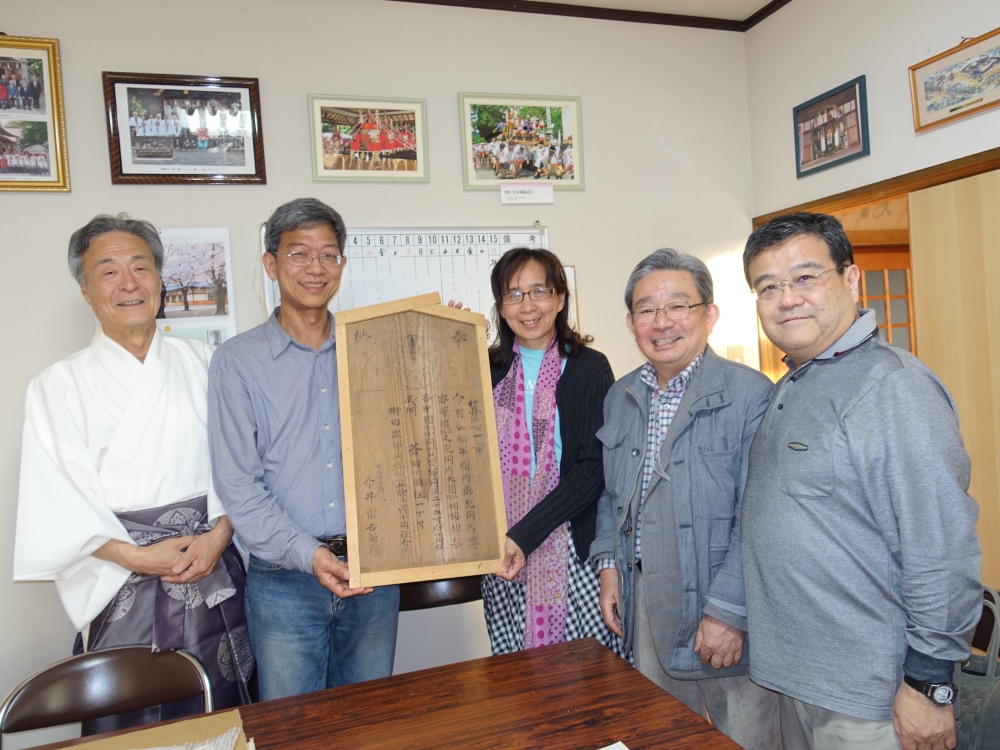 (左から・敬称略) 甘木須賀神社 宮司 三浦安正 台湾大学 化学系 教授 金必耀 国家高速網路與計算中心 左家静 皇学館大学 非常勤講師 深川英俊 愛知県立高校 退職教員 堀部和経(私) |