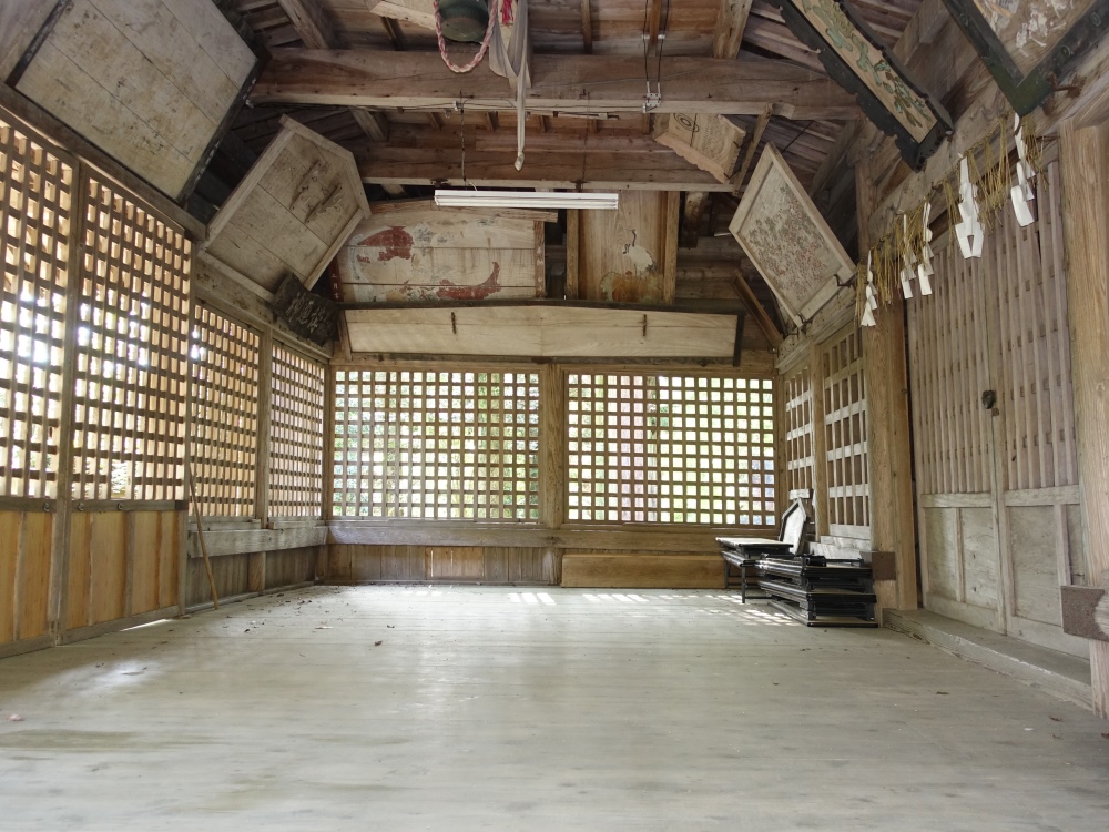 福岡県の秋月「秋月八幡宮」の本道内部(横からの写真) |
