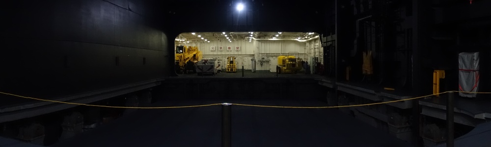 (4)エレベータ上昇開始時、仰角で艦橋を見る |