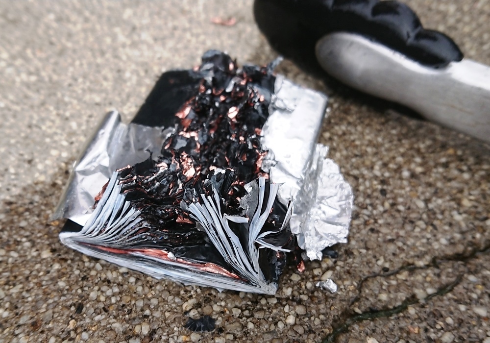 (6)電池の中央部分までしっかりと水が入り込み、反応が終わったようだ。 |