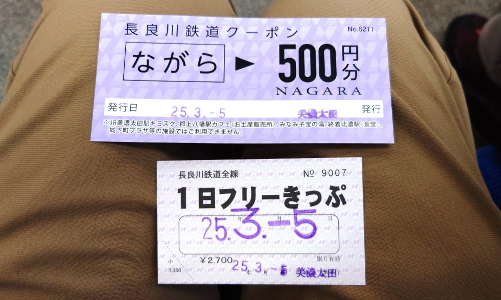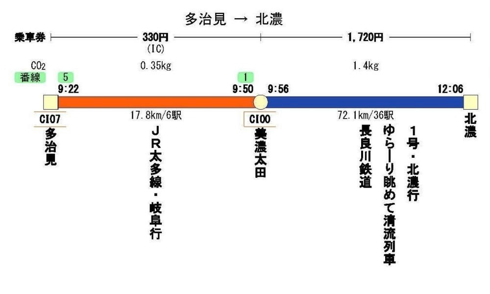 (500円分の金券付)、多治見・北濃間の乗車列車 |