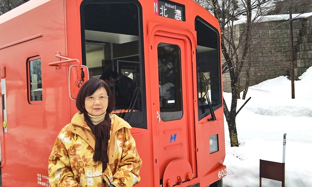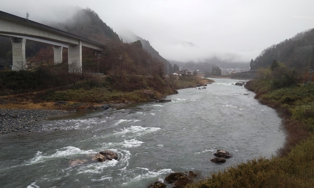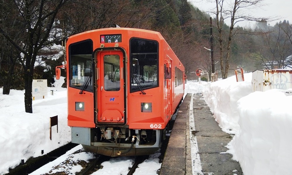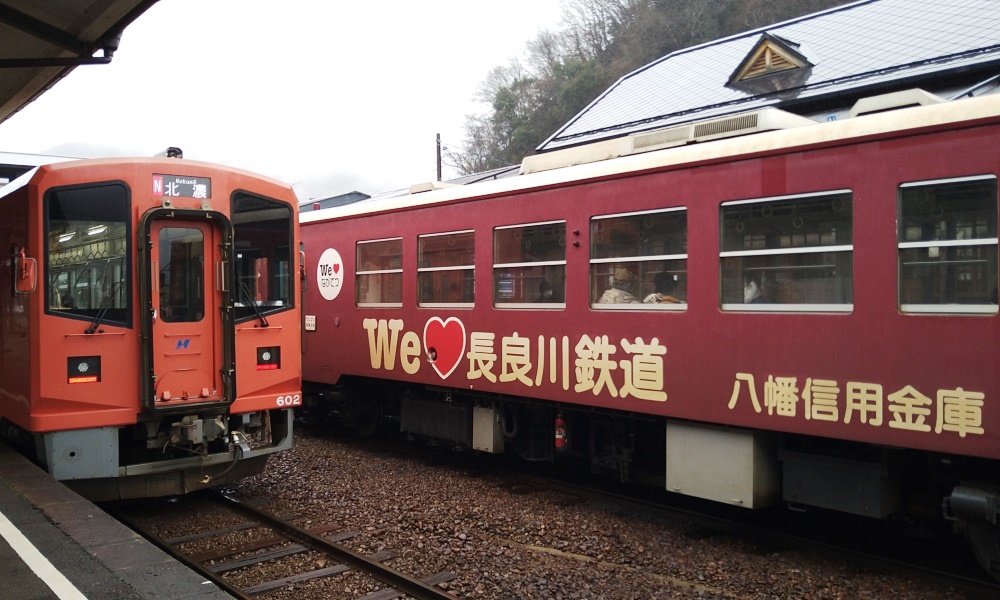 (4)郡上八幡駅で、上下線すれ違い。 |