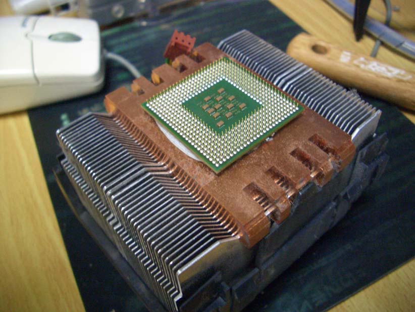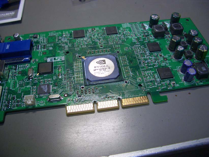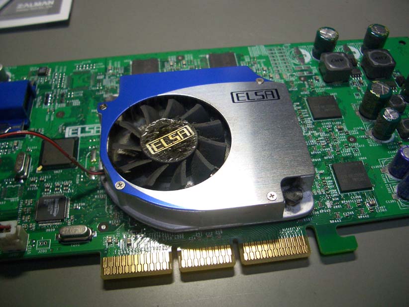 VGAボードのファンを外し、銀ロウを擦ってとったところ。