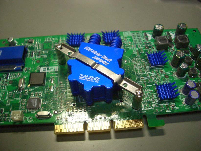 VGAウオーターブロックには、クランプで固定。共に非常に簡単にできる。