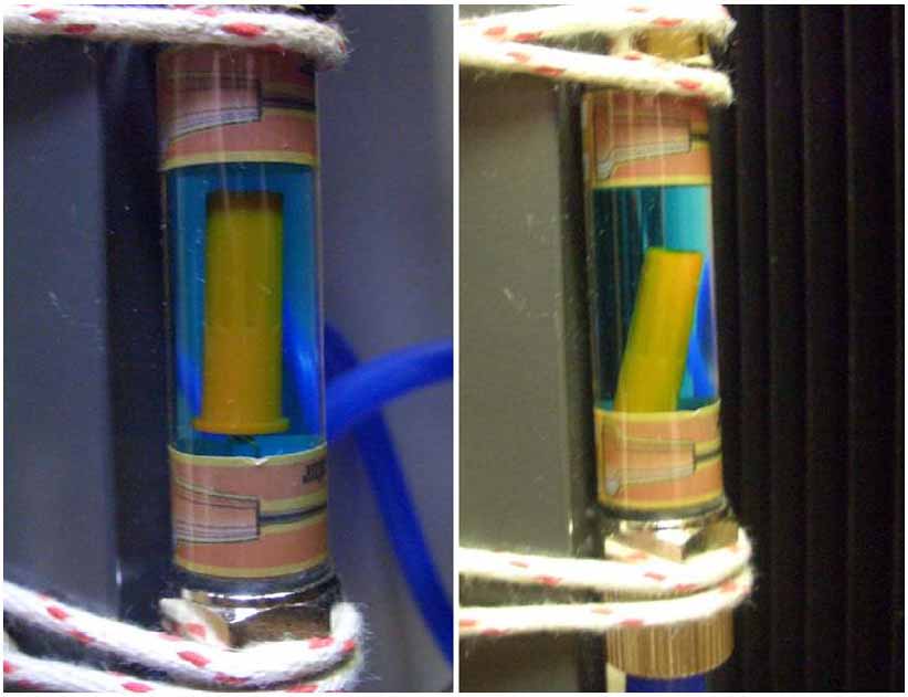 写真右は、スイッチオフ状態で水流が流れていない状態。