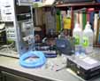 左奥に、水冷の要、ラジエター。フィンをつぶさないように・・・