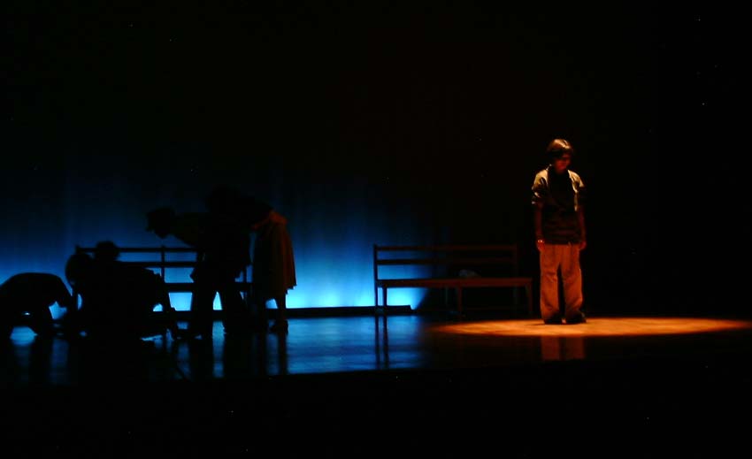 学校祭の初日、印象的なのは「演劇部」の出来が良かった。堂々とその役を演じていて、見ていて大変うれしくなるような出来。右の写真は、ストーリーの中で重要なシーンのひとつ。