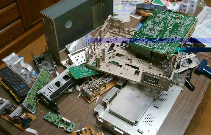 夜、ハイビジョンを録画できる規格のW-VHSのデッキをばらす。先日から故障していて、故障が3度目となったので、以前から、もう一回故障したら、「バラシテヤル」と決めていたので、ついに実行した。