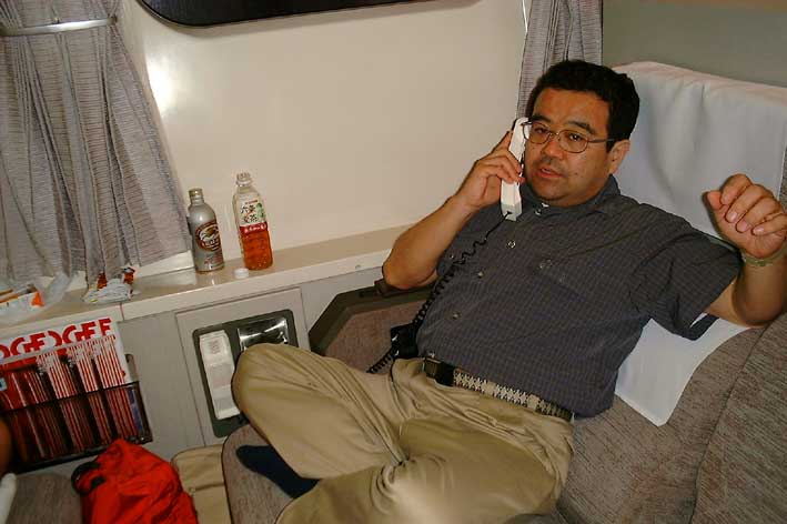 上の写真は、トンネル内で、個室に備え付けてあるコレクトコール専用電話で、「自宅に帰宅が遅れるという」連絡をしている私。この電話も、便利だった。何せ、トンネル内なのでね、今のところ、携帯は通じなかった。でも、順次工事を進めていて、そのうち携帯電話も通じるようになるだろうけどね。