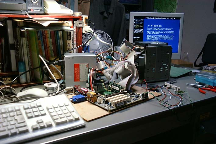 DOSV(IBM互換機)のマザーボード3枚とも、Sockt370であるので、CPUをそれぞれ入れ替えながら、どのパターンで起動可能か調べている。机の上やら、床に、部品がバラバラしてきた。ここらで整理しないと、記憶だけに頼っている元の状態が分からなくなってきそうだ・・・。やばっ。