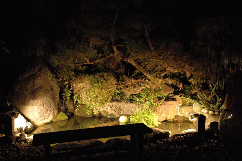 我が家の夜の池の写真