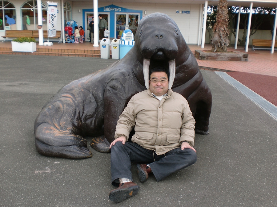 とても寒く、小雪もちらついて、アシカショー・イルカショーは雪模様。