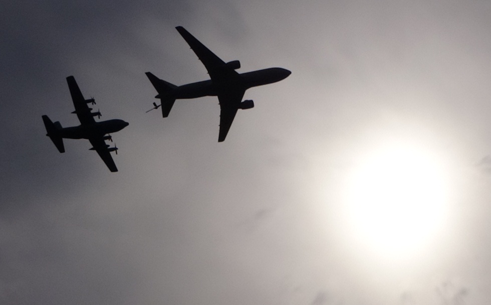 KC767からC130Hへの空中給油(模擬)しながら低空飛行を見る。