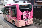 写真は、自宅前を通り過ぎていくコミュニティバス「ききょうバス」うながっぱ(ピンク)号