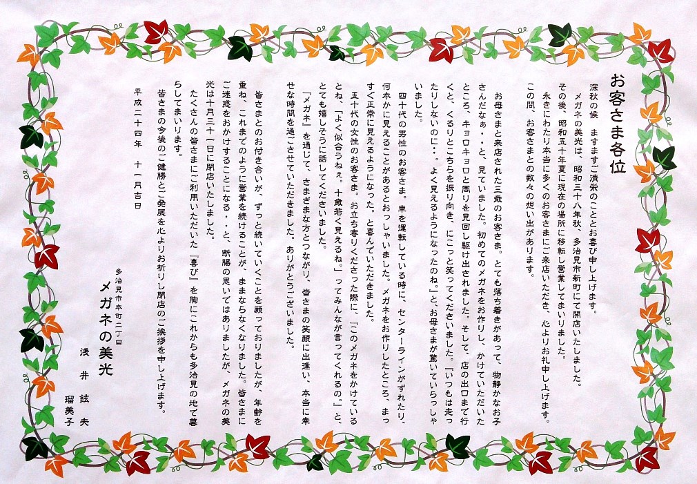 写真は,「美光」の店舗前の張り紙。。。記憶としてここに残しておこう。