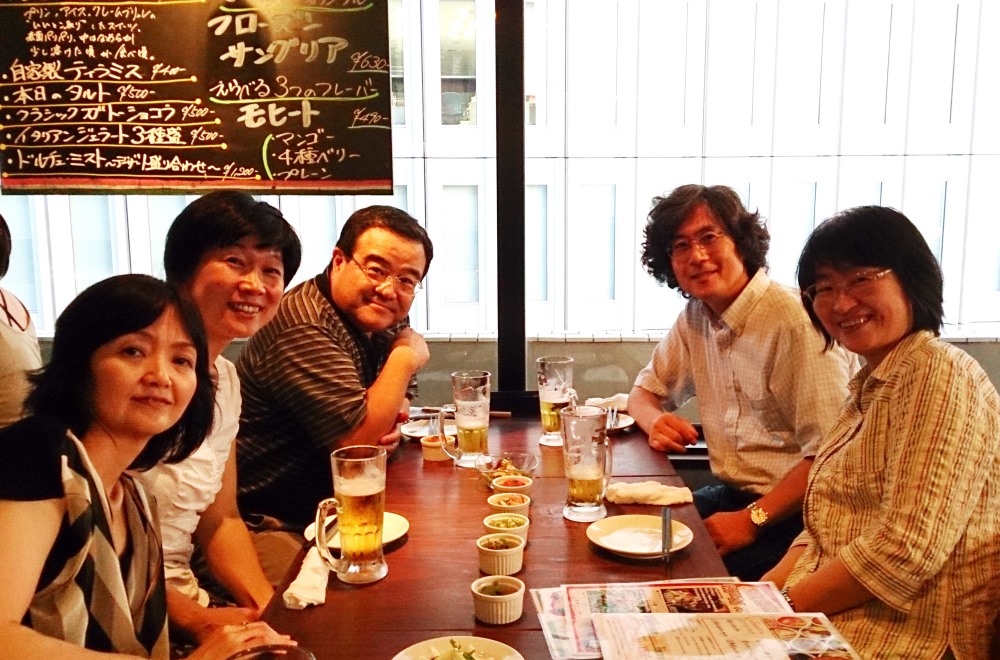 右の写真は、GRAPESの仲間と・・・(左から)山内・小野田・私(堀部)・友田・永田さんの5人。