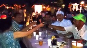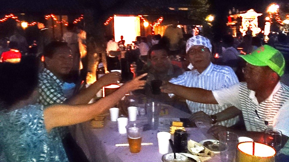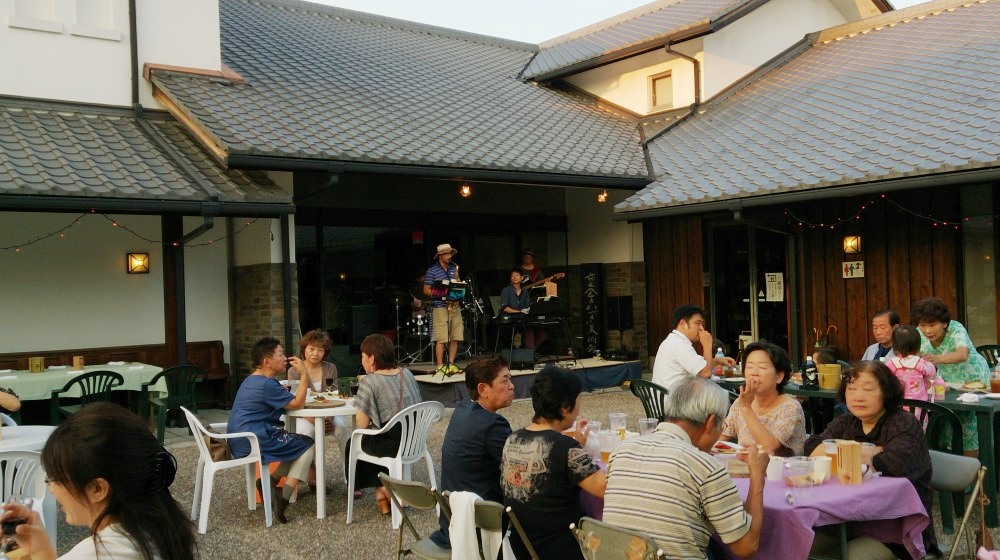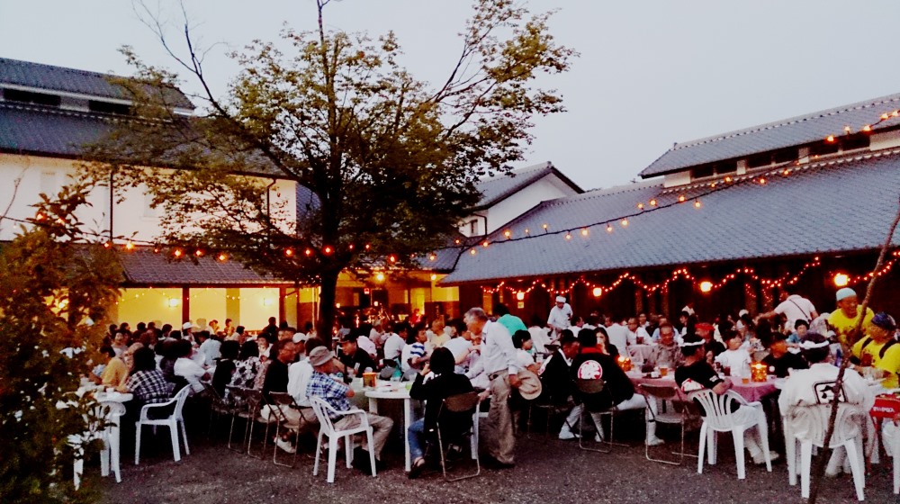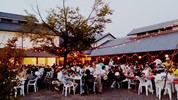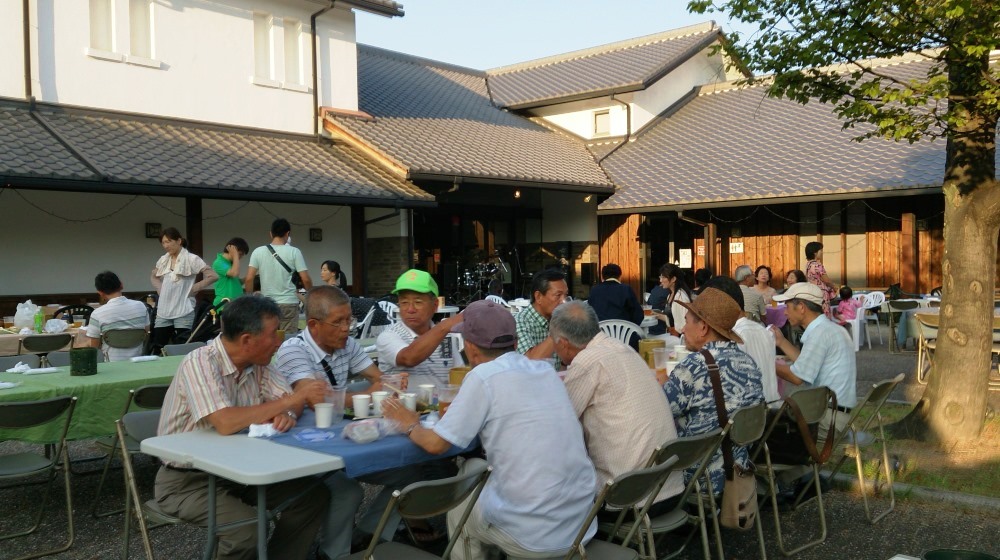 市之倉さかづき美術館前広場のビアガーデンに委員会の10名で移動。