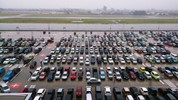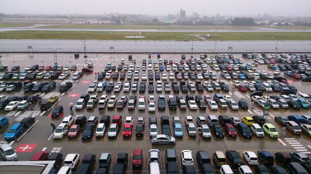 写真は雨に煙る愛知県営名古屋空港と駐車場。