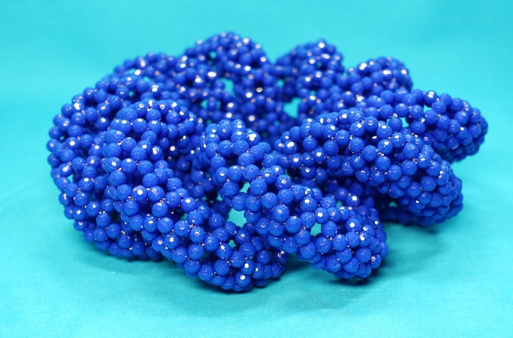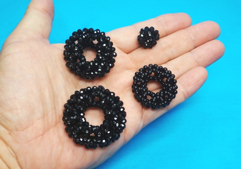 先日購入した黒いビーズのネックレスをバラして編み直した。
