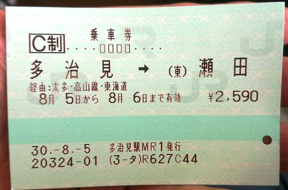 帰路も、瀬田(東海道線)岐阜(高山線)美濃太田(太多線)多治見