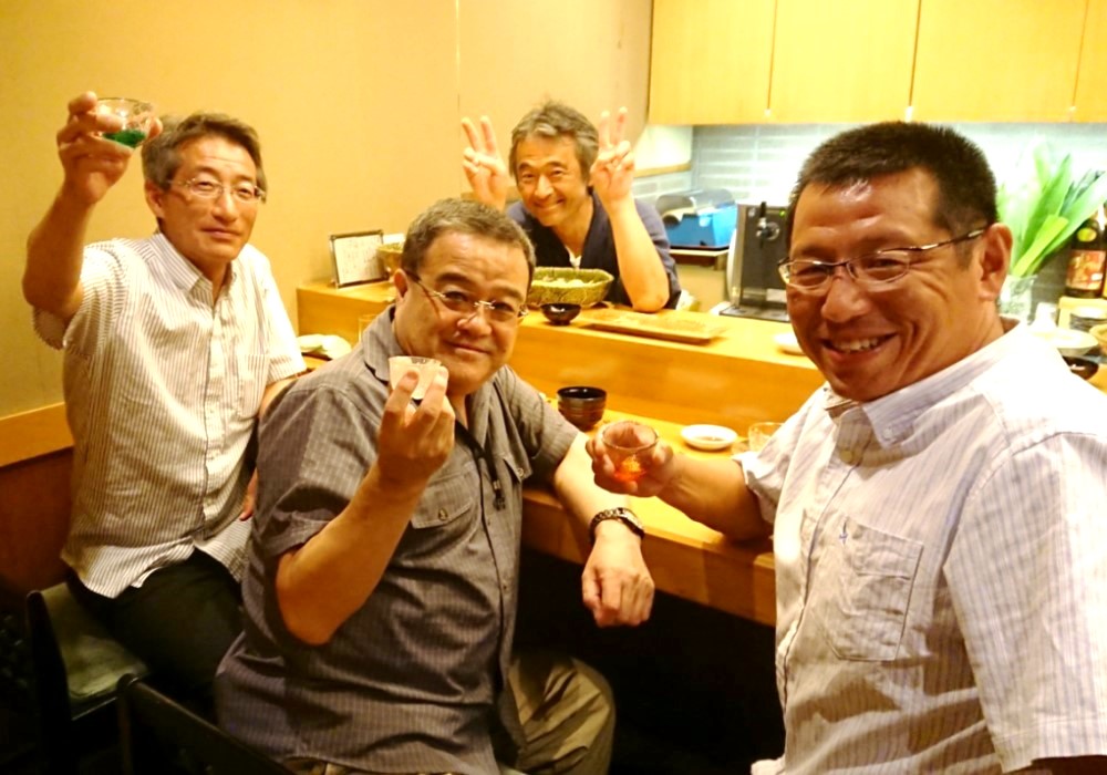 大将と、左から、小川、私、和田の3人で、楽しい時間を過ごす。