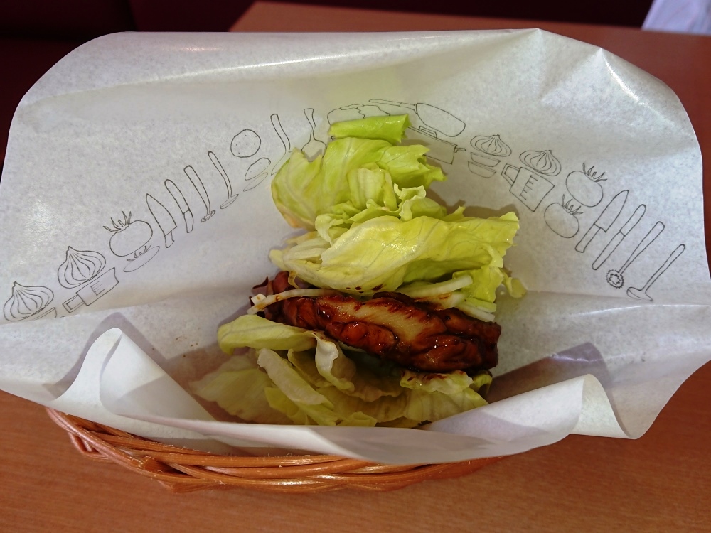 妻に「ハンバーガーのパンは要らないよね」って話した直後に入ったモスのお店のメニューにあるではないか・・・パンなしのメニューが・・・。
