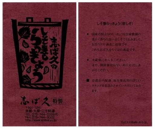 お店の名前は『志ば久本店』でした。・・・写真は、志ば久のしそ巻きらっきょうのラベル。