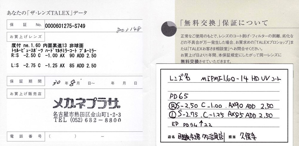 これで、メインとサブの普通の眼鏡とサングラスのレンズ度数をすべて合わせた。
